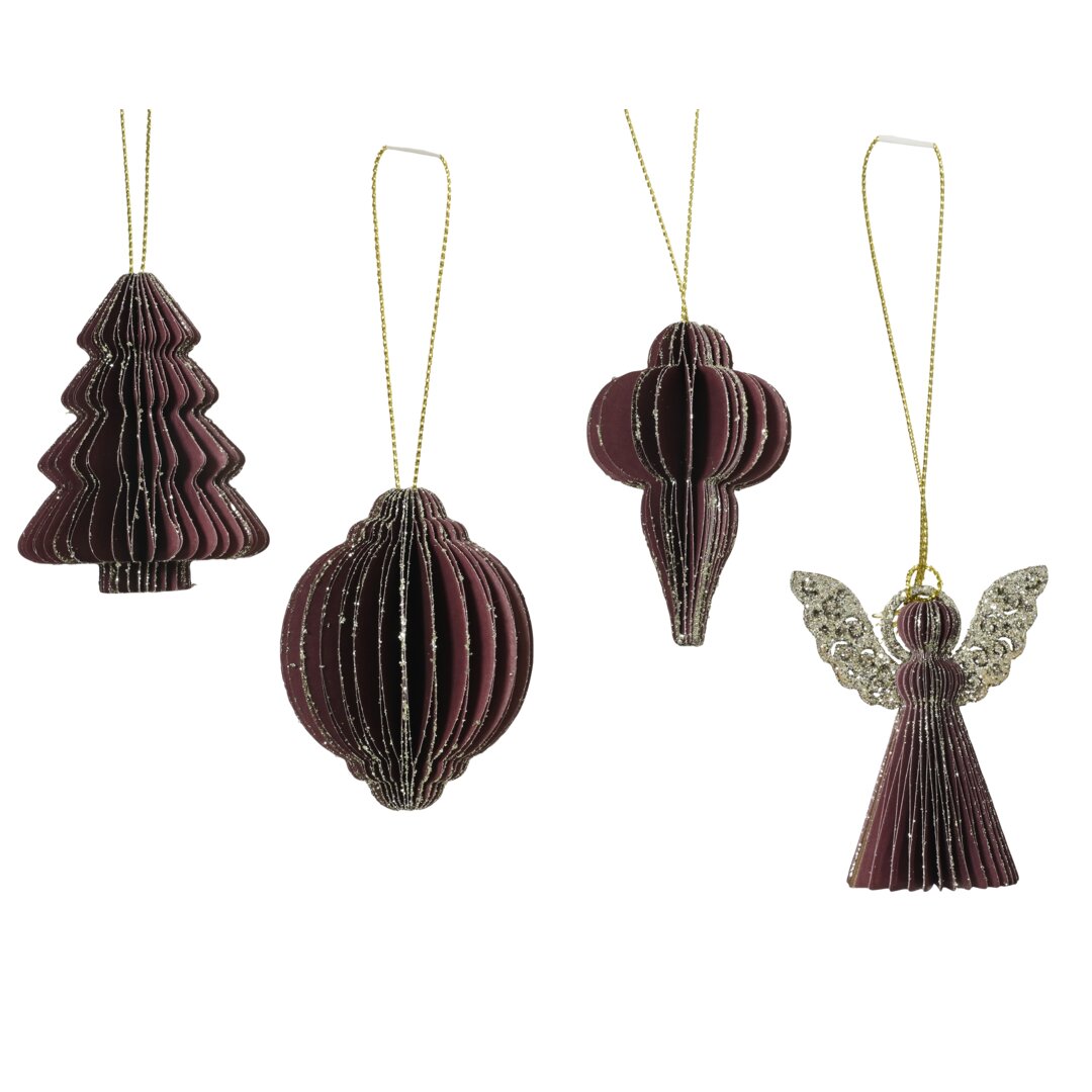 Dekohänger Papier, maroon, 6 cm, 4-fach sortiert