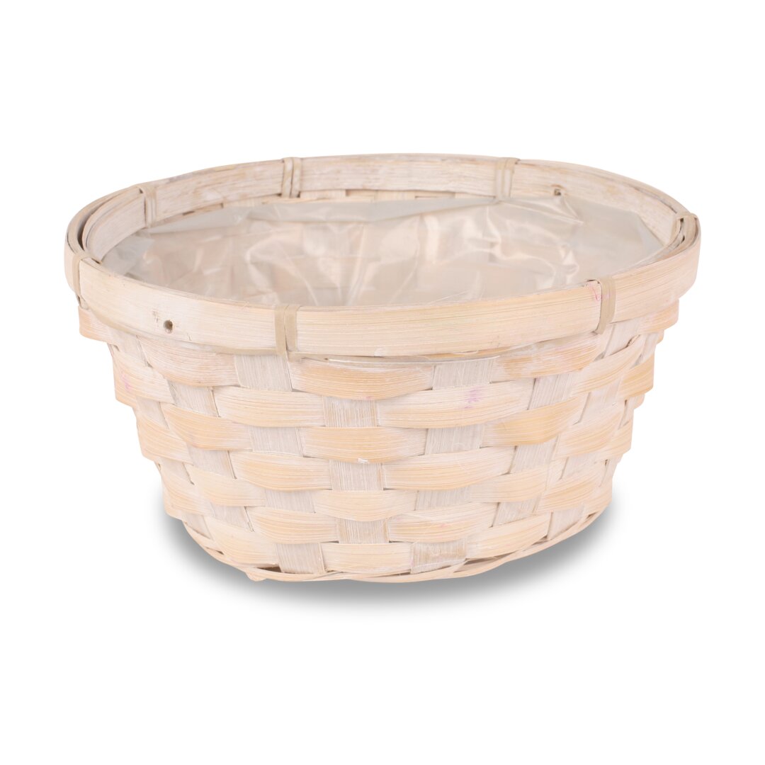 Bambussplitt-Pflanzkorb, rund, weiß gewaschen, Ø 20 cm