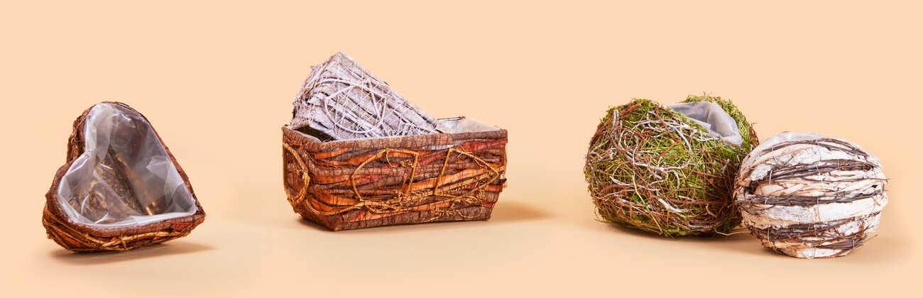Rindenstreifen-Pflanzkorb rund, 3er-Set