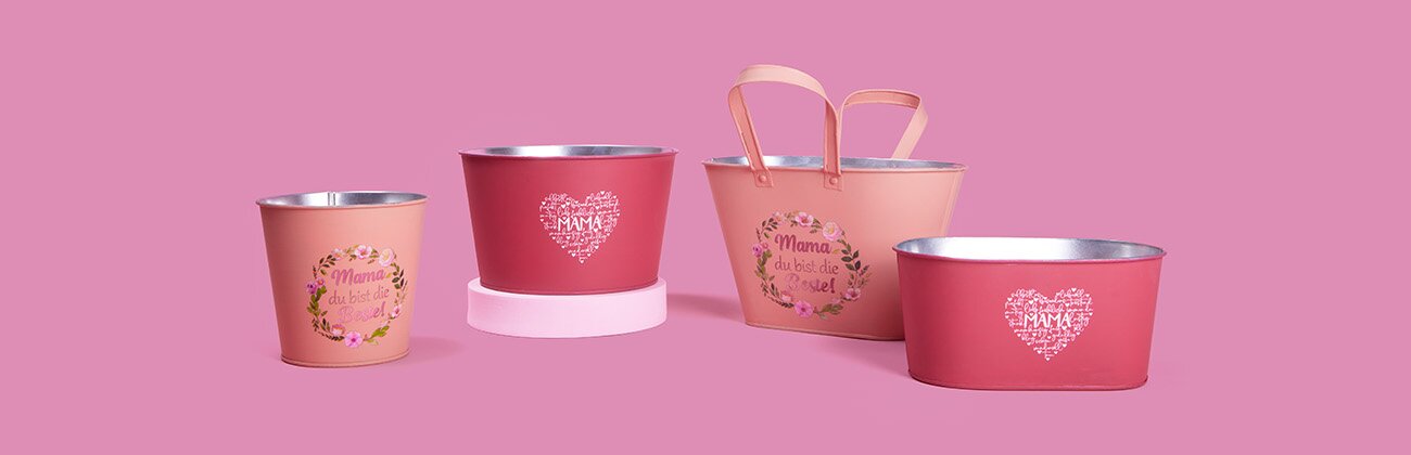 Metall-Pflanztopf "Mama", pink, 2-fach sortiert