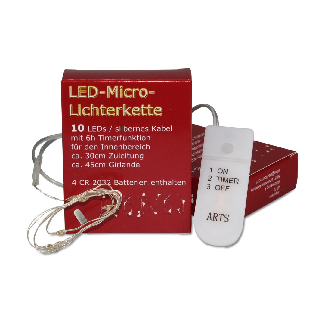 Micro LED-Lichterkette, silber, Batterie, warmweiß, 50 cm