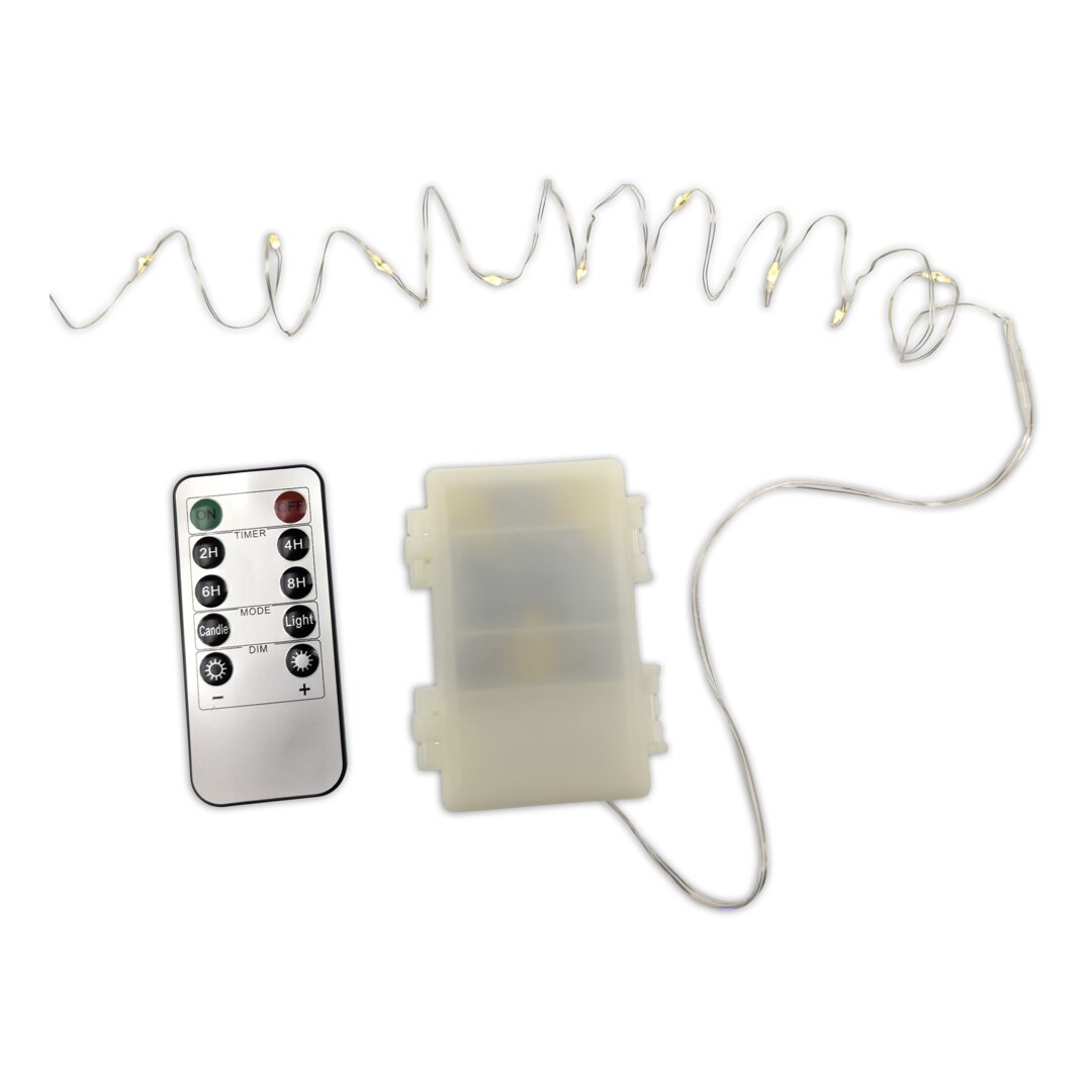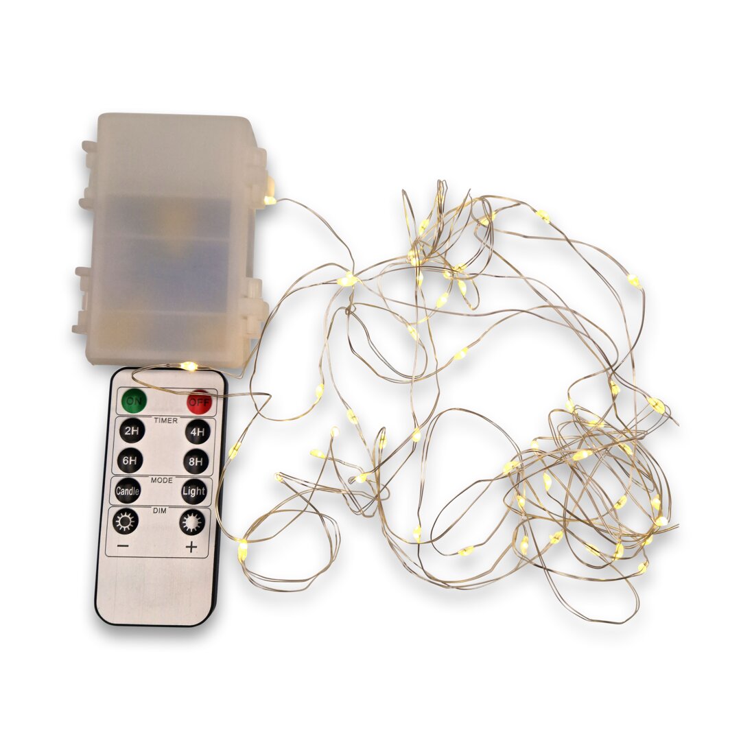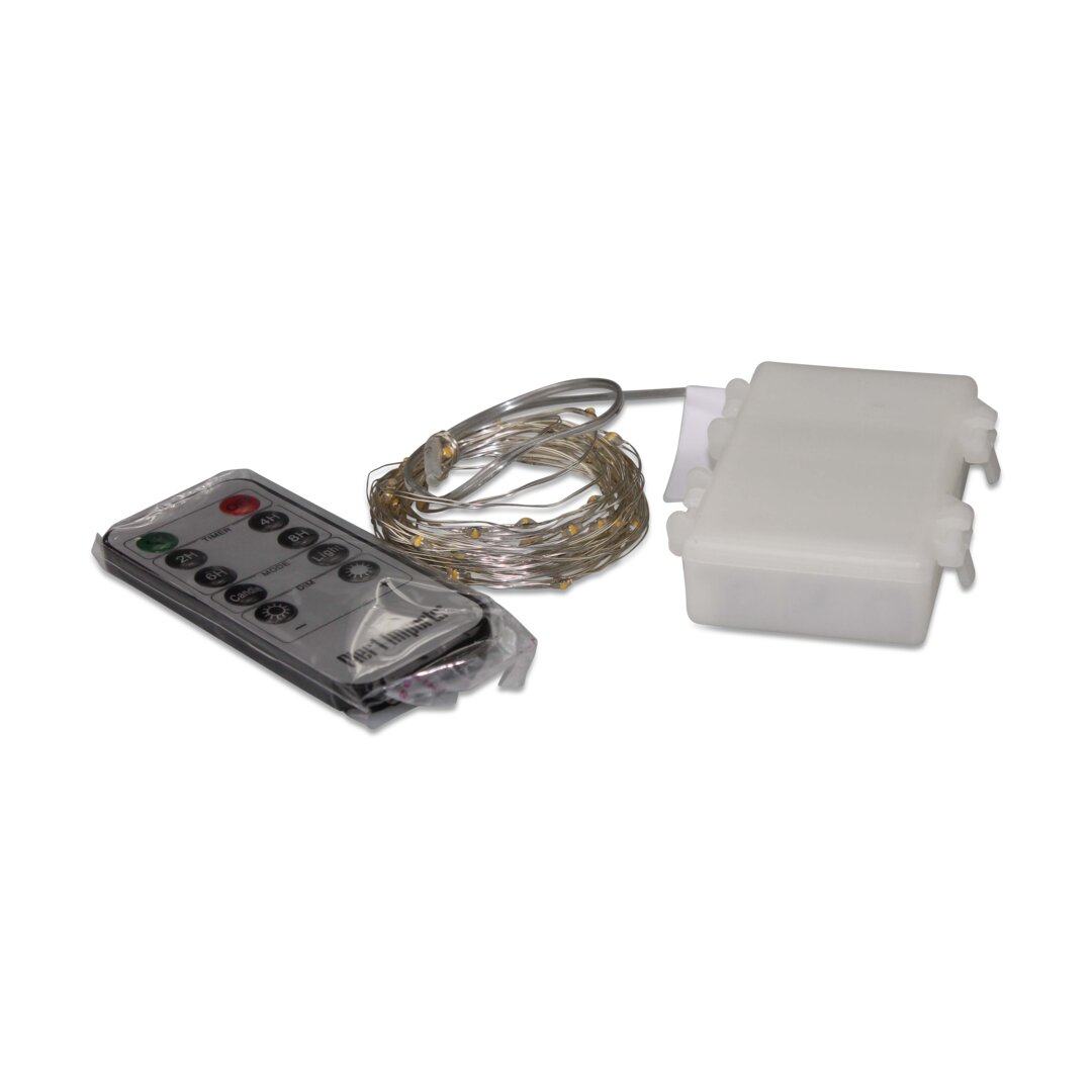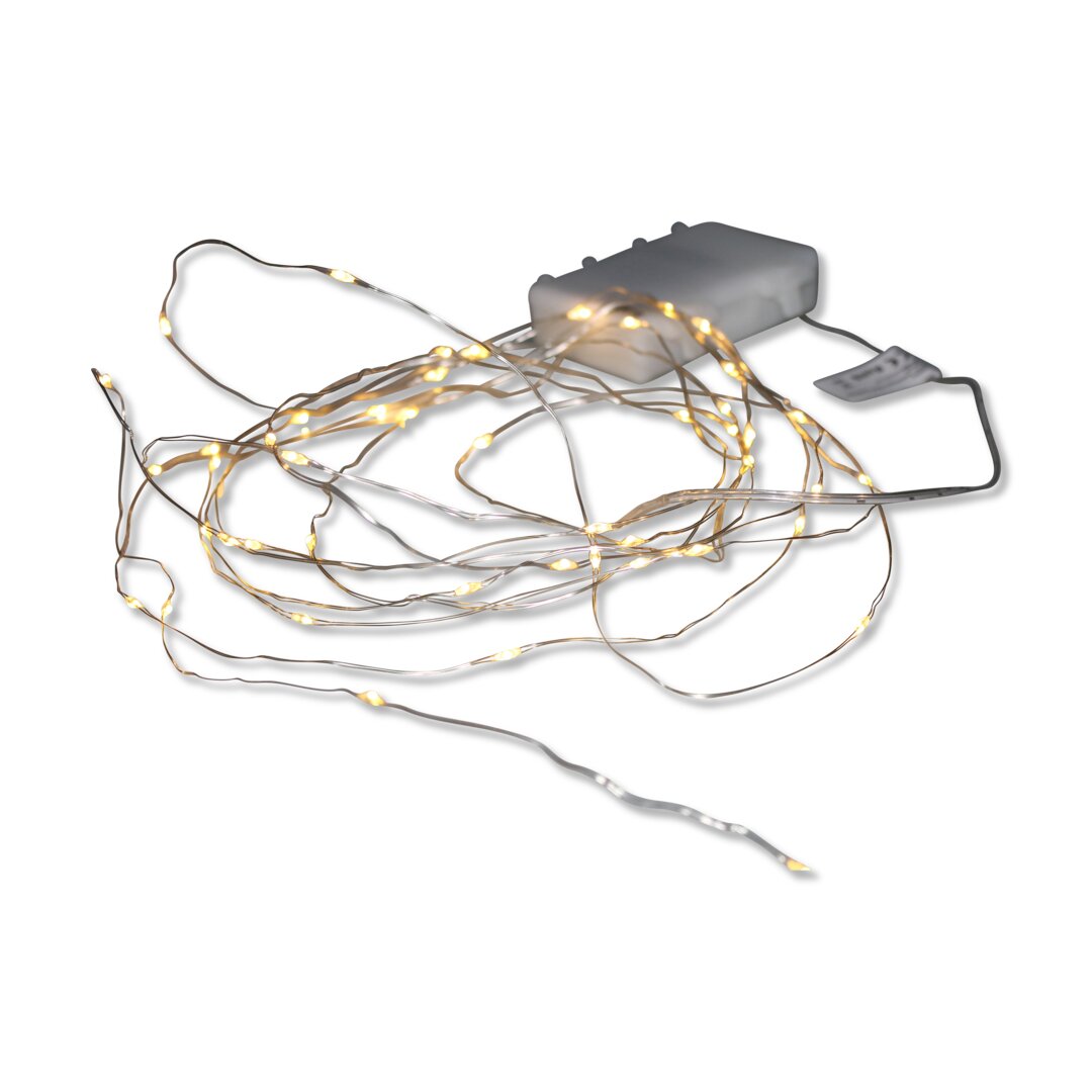 Micro LED-Lichterkette mit Fernbedienung, silber, Batterie, Outdoor, warmweiß, 5 m