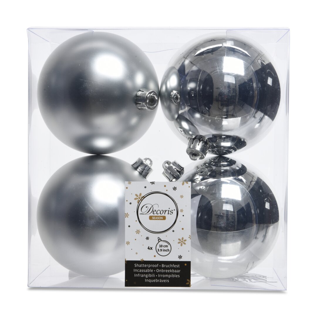 Kugeln, bruchfest, silber, Ø 10 cm, 4 St.