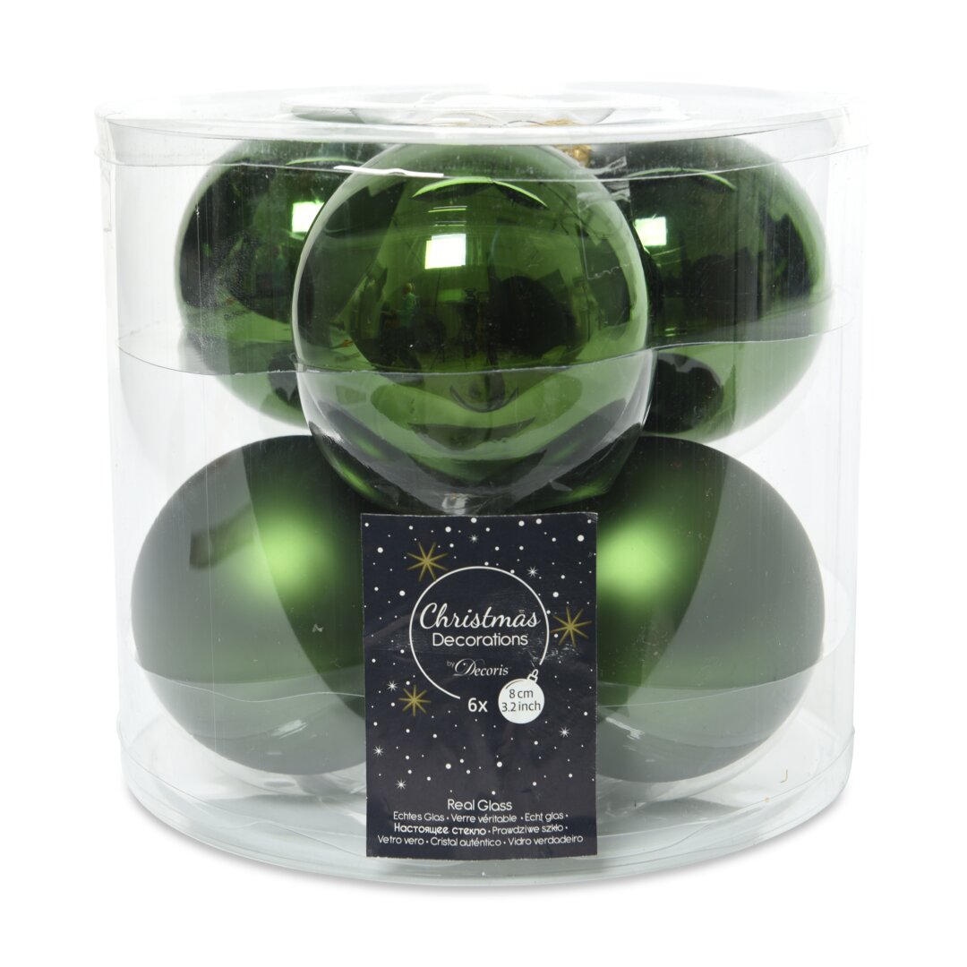 Glaskugeln, piniengrün, Ø 8 cm, 6 St.