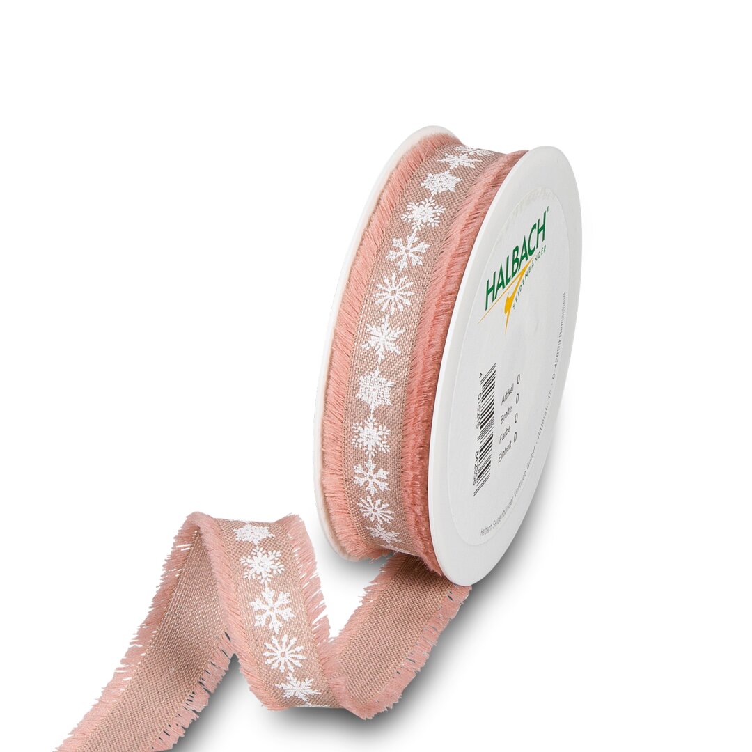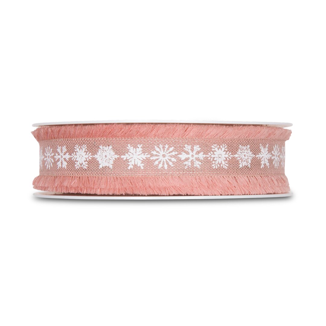 Leinen-Druckband Eiskristalle, rosé, 25 mm