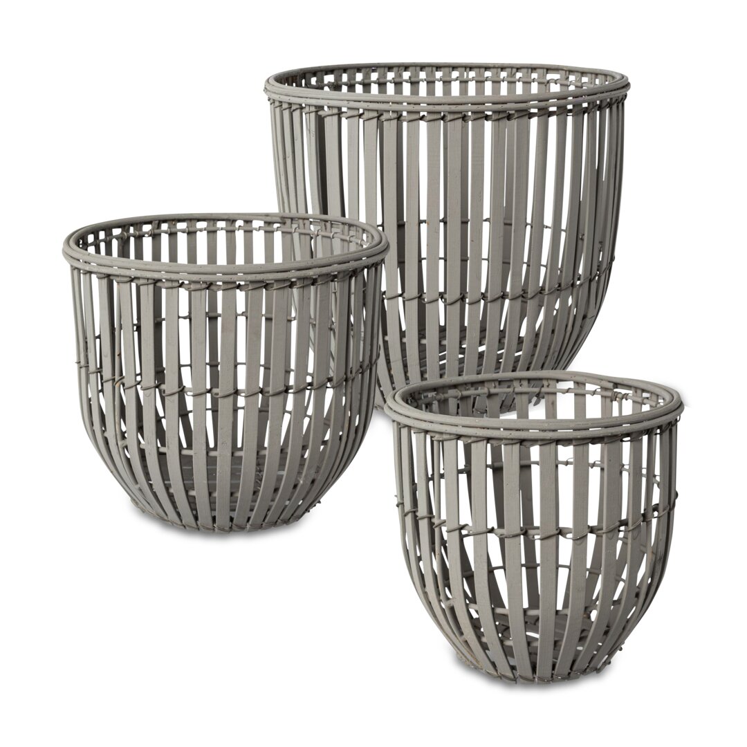 Bambus-Korb, 3er Set, grau