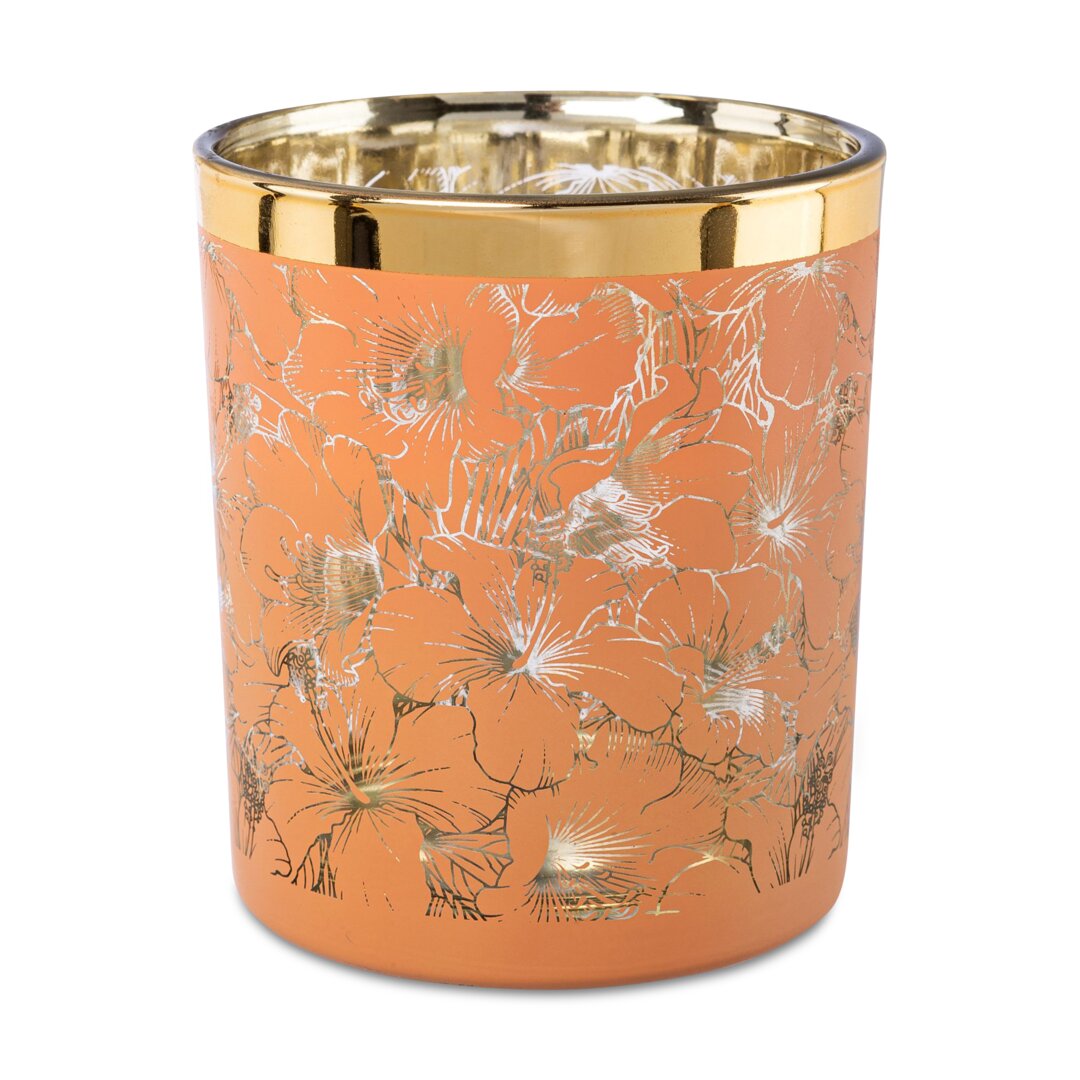 Windlicht Flowers mit Goldrand, apricot, Ø 9 cm