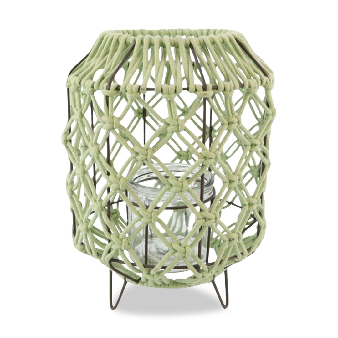 Laterne Makramee mit Glaseinsatz, grün, 31 cm