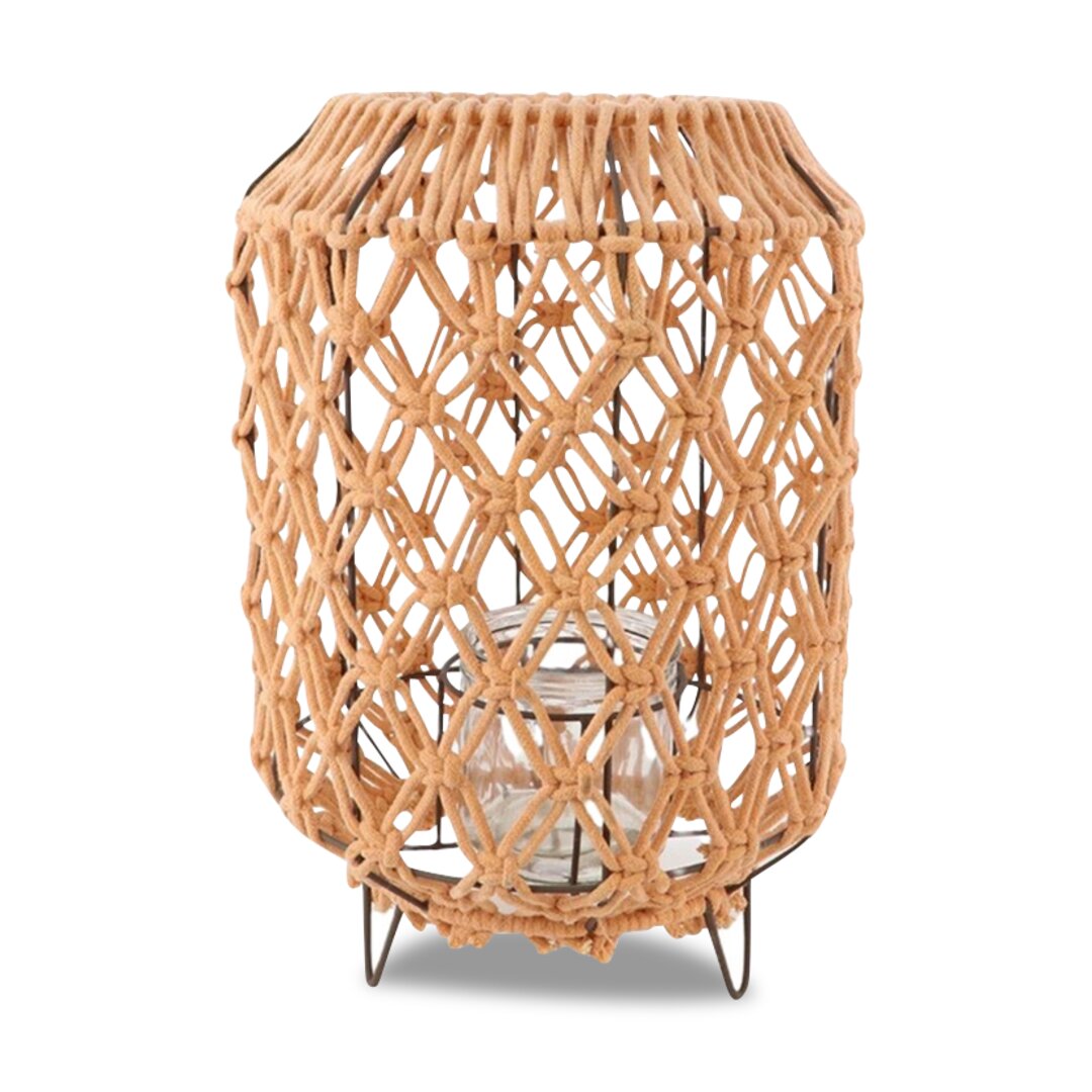 Laterne Makramee mit Glaseinsatz, rosa, 39 cm