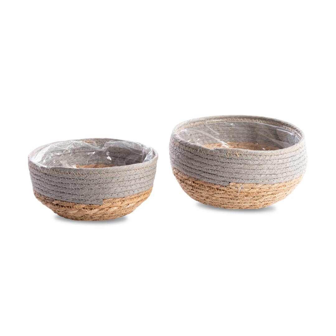 Seegras-Pflanzkorb, rund, grau-natur, 2er Set