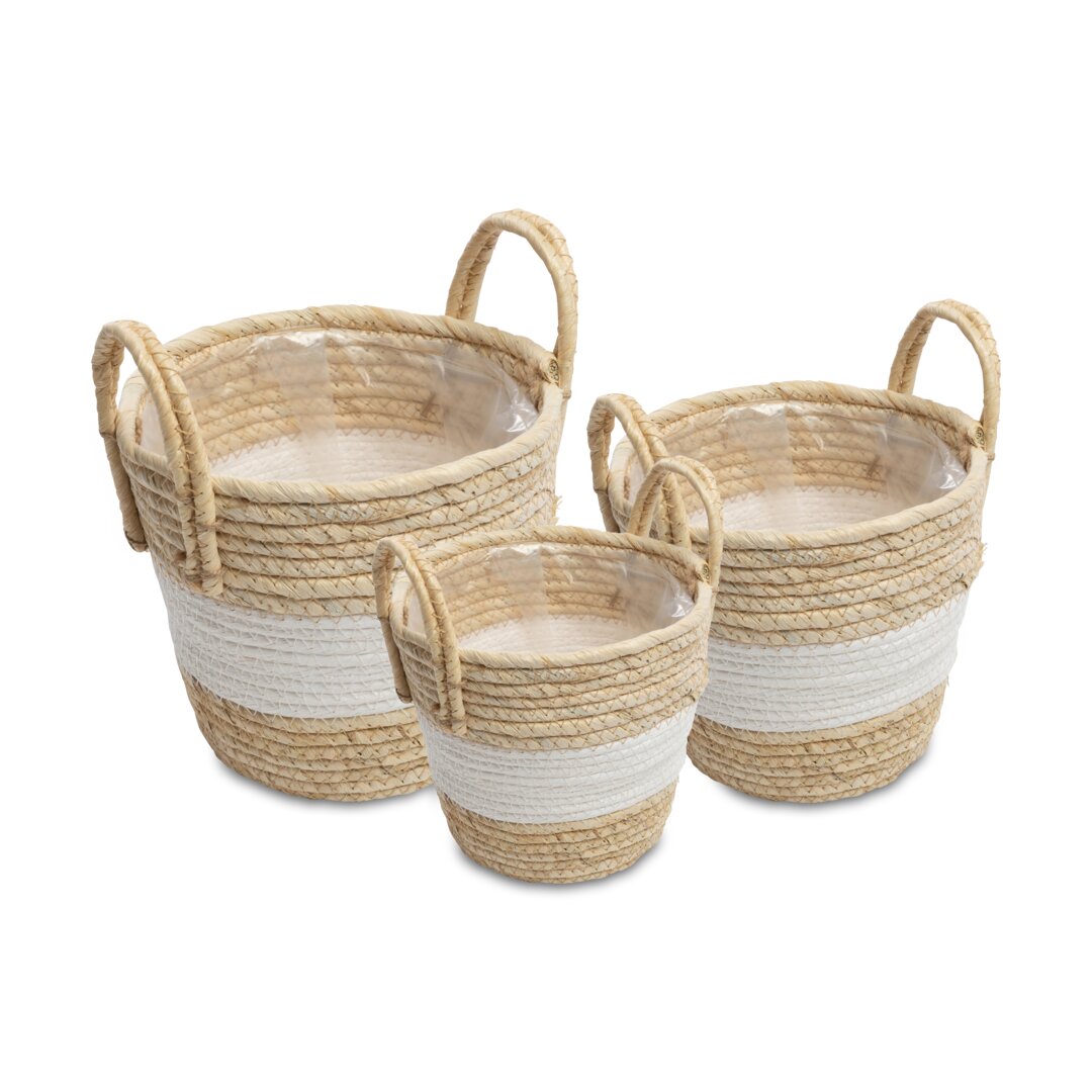 Seegras-Pflanzkorb mit Henkeln, gestreift, weiß, 3er Set