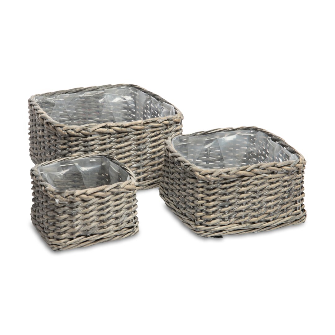 Spaltweiden-Pflanzkorb geflochtener Rand, quadratisch, grau, 3er Set