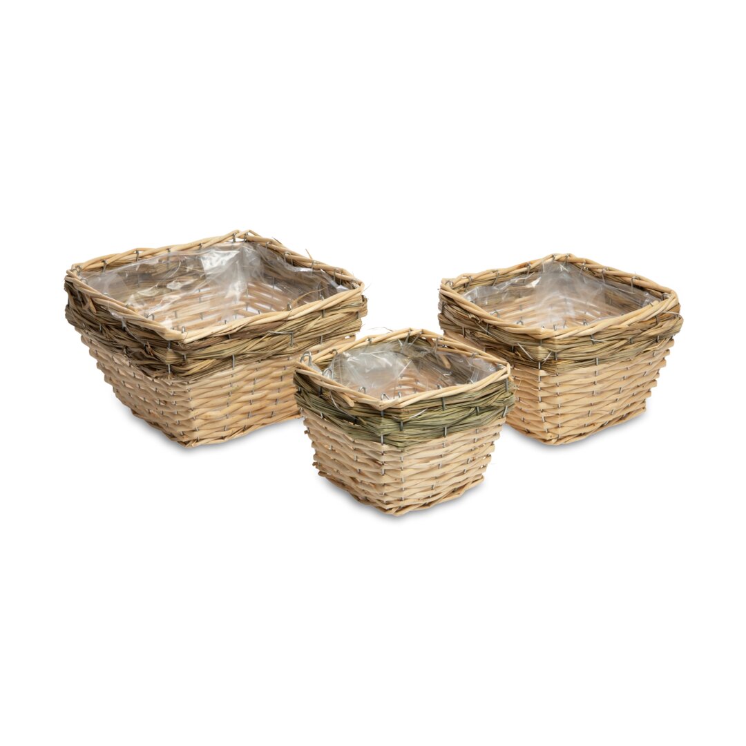 Weide/Halm-Pflanzkorb, quadratisch, natur, 3er Set