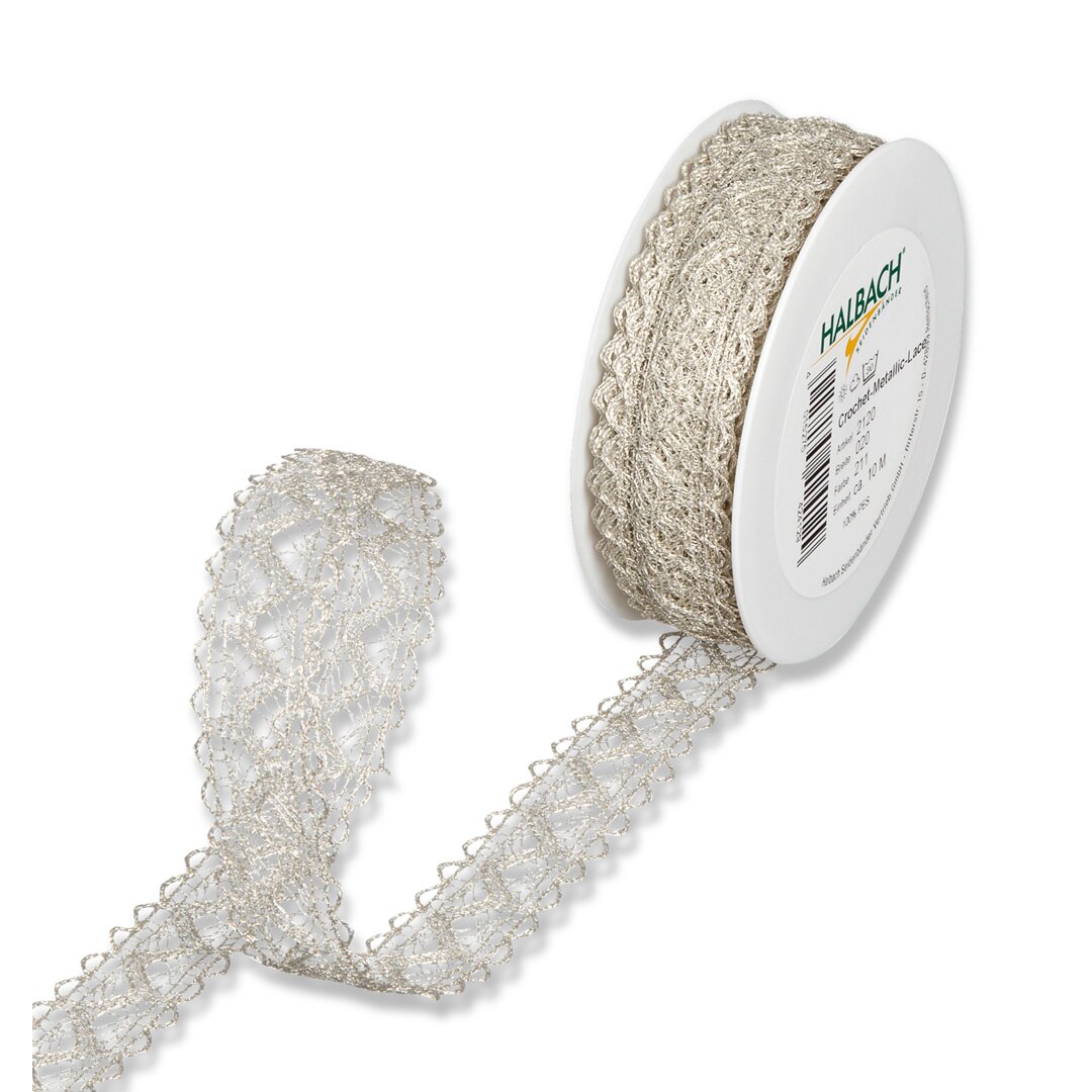 Metallic-Häkelspitze, silber, 20 mm