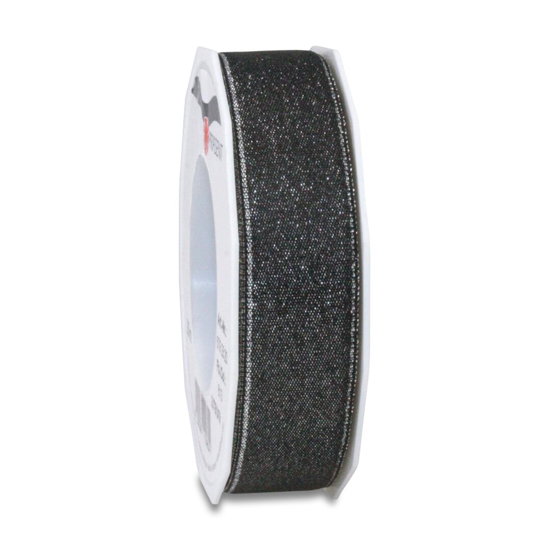 Band "Glitter-Satin", schwarz-silber, 25 mm