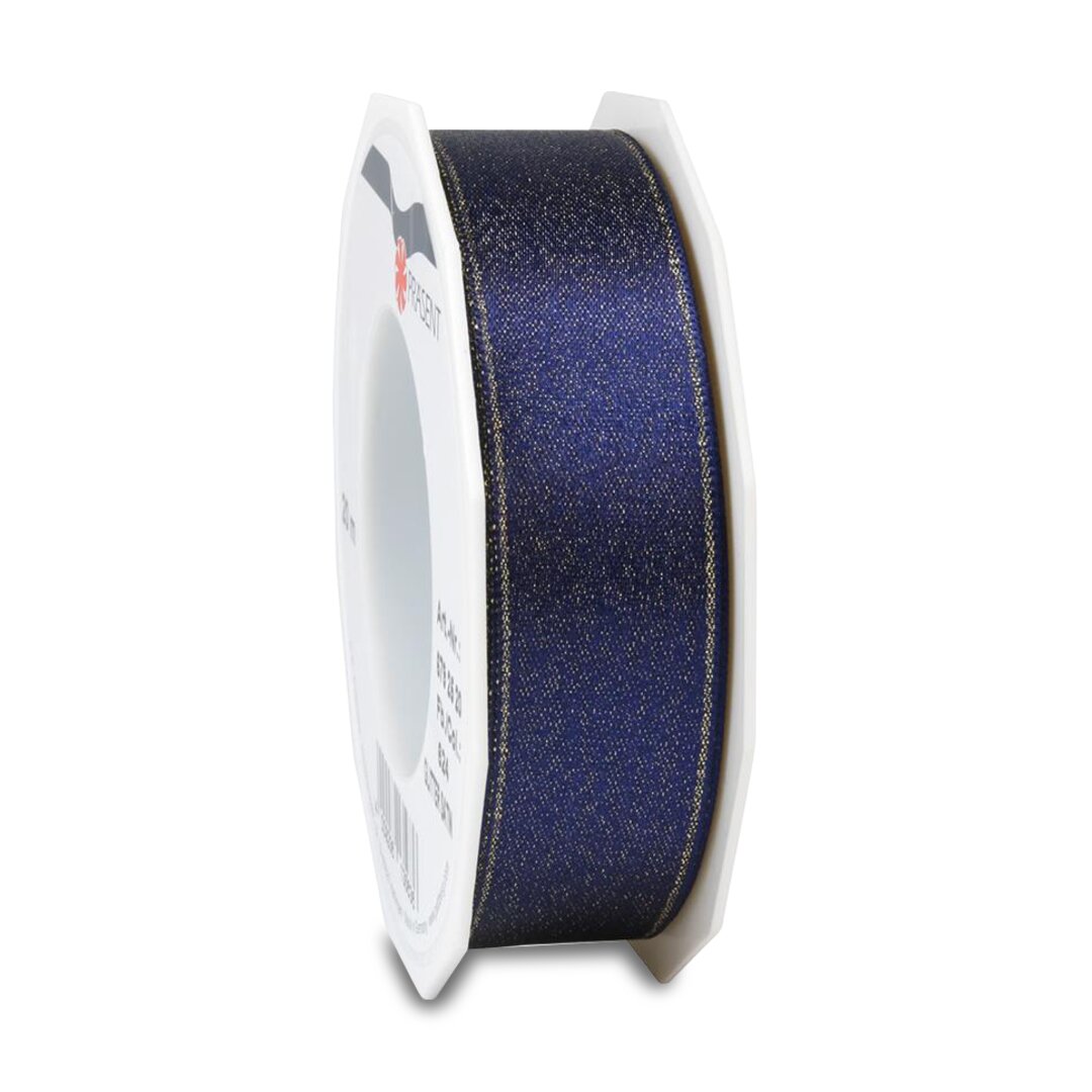 Band "Glitter Satin", dunkelblau- gold, 25 mm