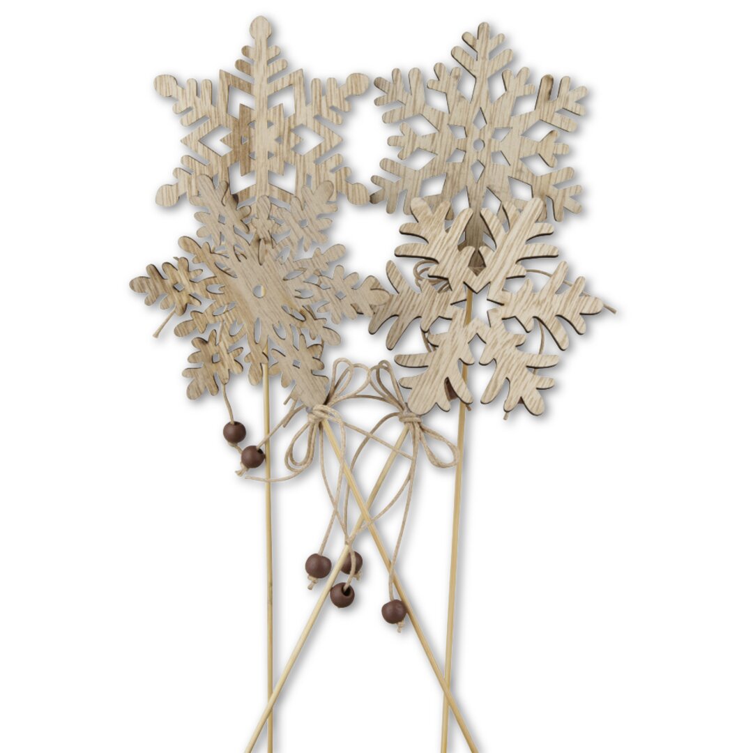 Holzstecker "Schneeflocke", 28 cm, 4-fach sortiert