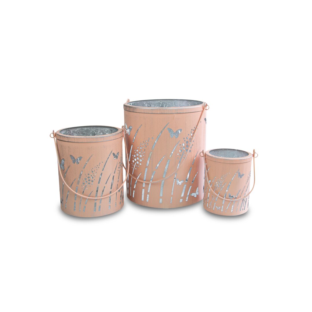 Laternenset mit Henkel "Gräser", Metall, rosé, 3er Set
