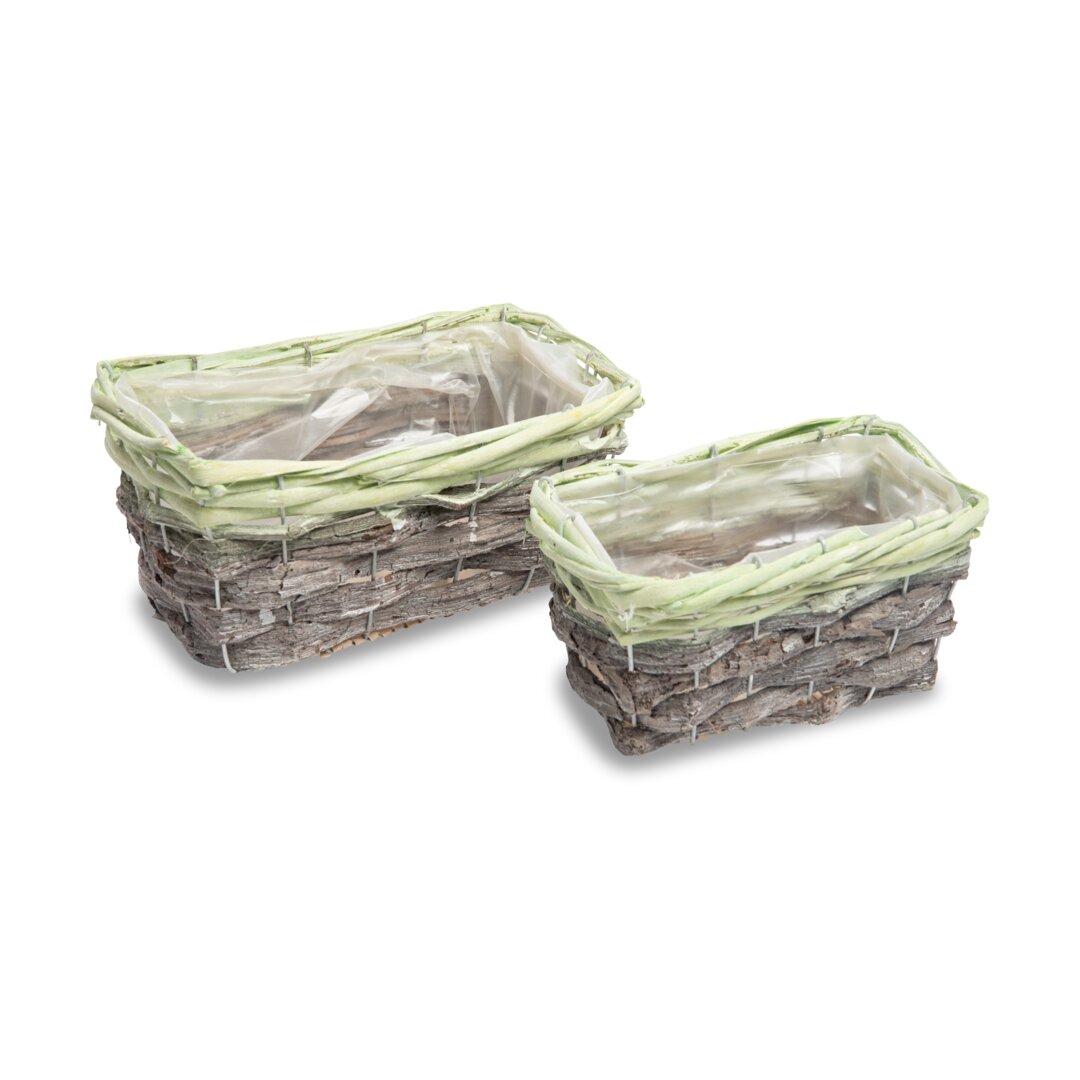 Spaltweiden-Pflanzkorb, rechteckig, grau-hellgrün, 2er Set