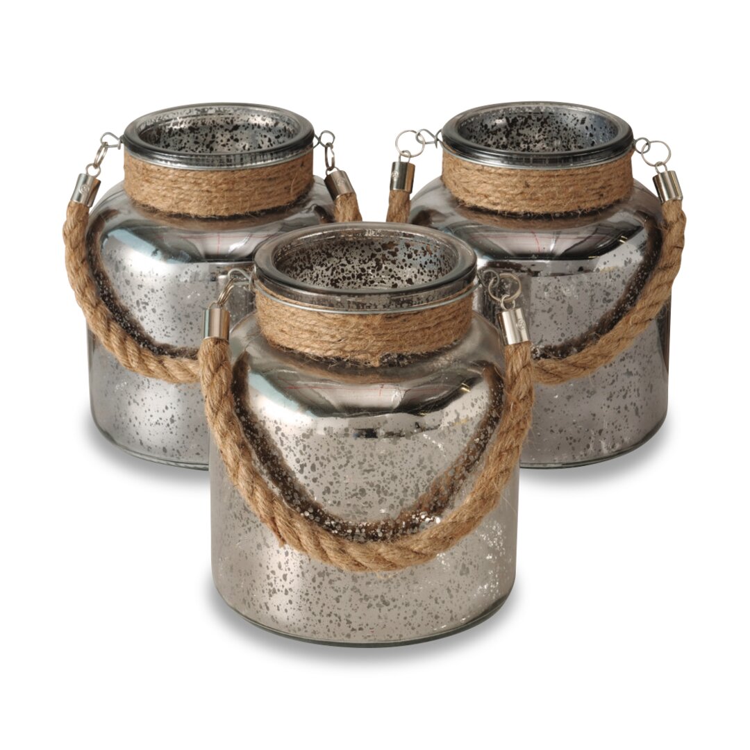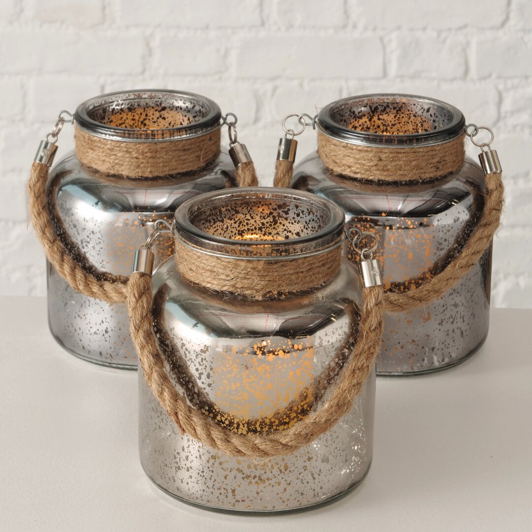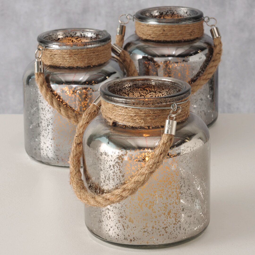 Windlicht "Poldy", silber, Ø 14 cm, 3-fach sortiert