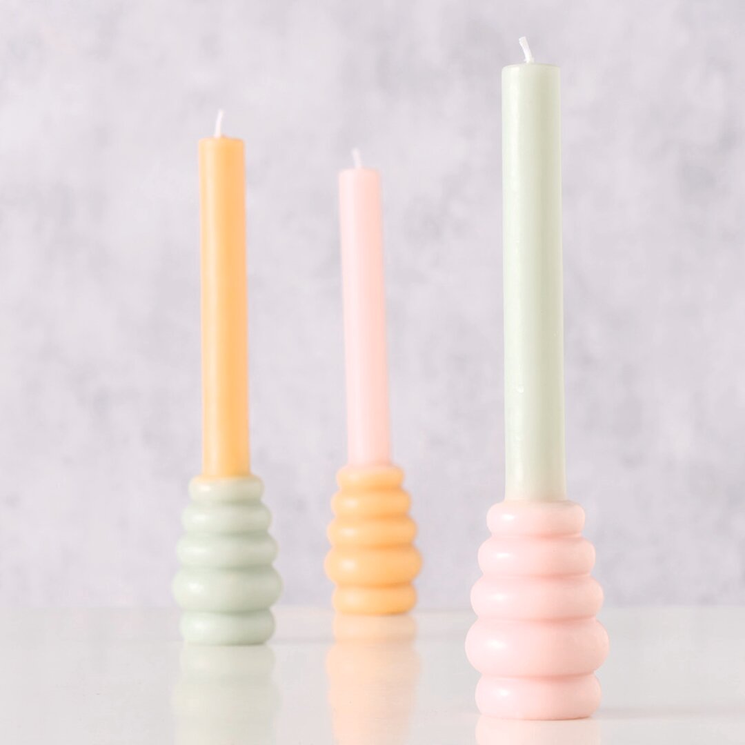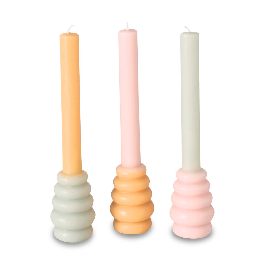 Kerze "Manico", apricot-grün, rosa, 25 cm, 3-fach sortiert
