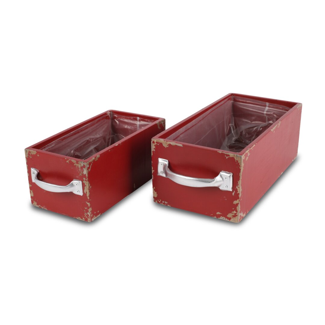 Pflanzschublade Antikholz, dunkelrot, 2er Set