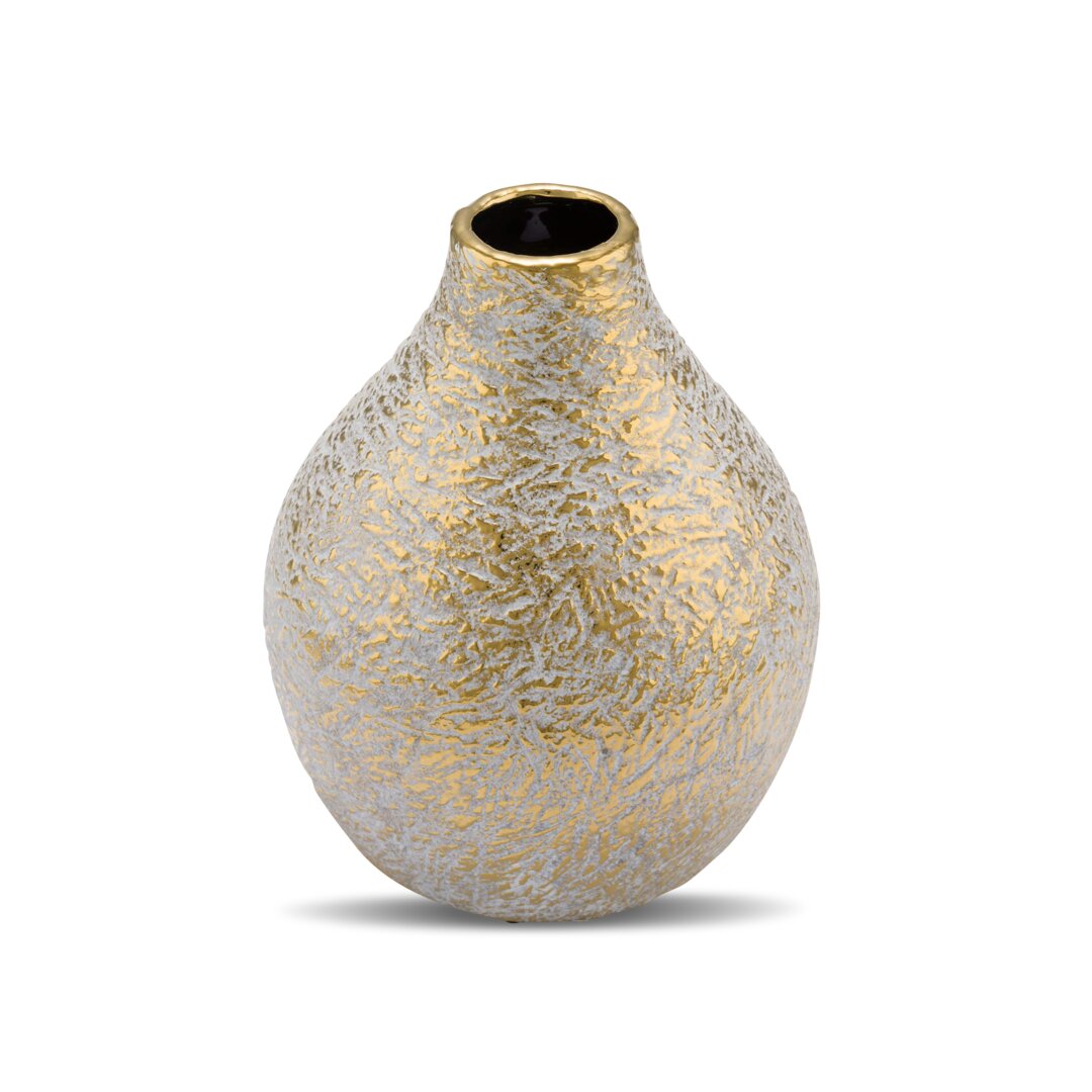 Keramikvase, bauchig, weiß-gold, Ø 19 x 22 cm