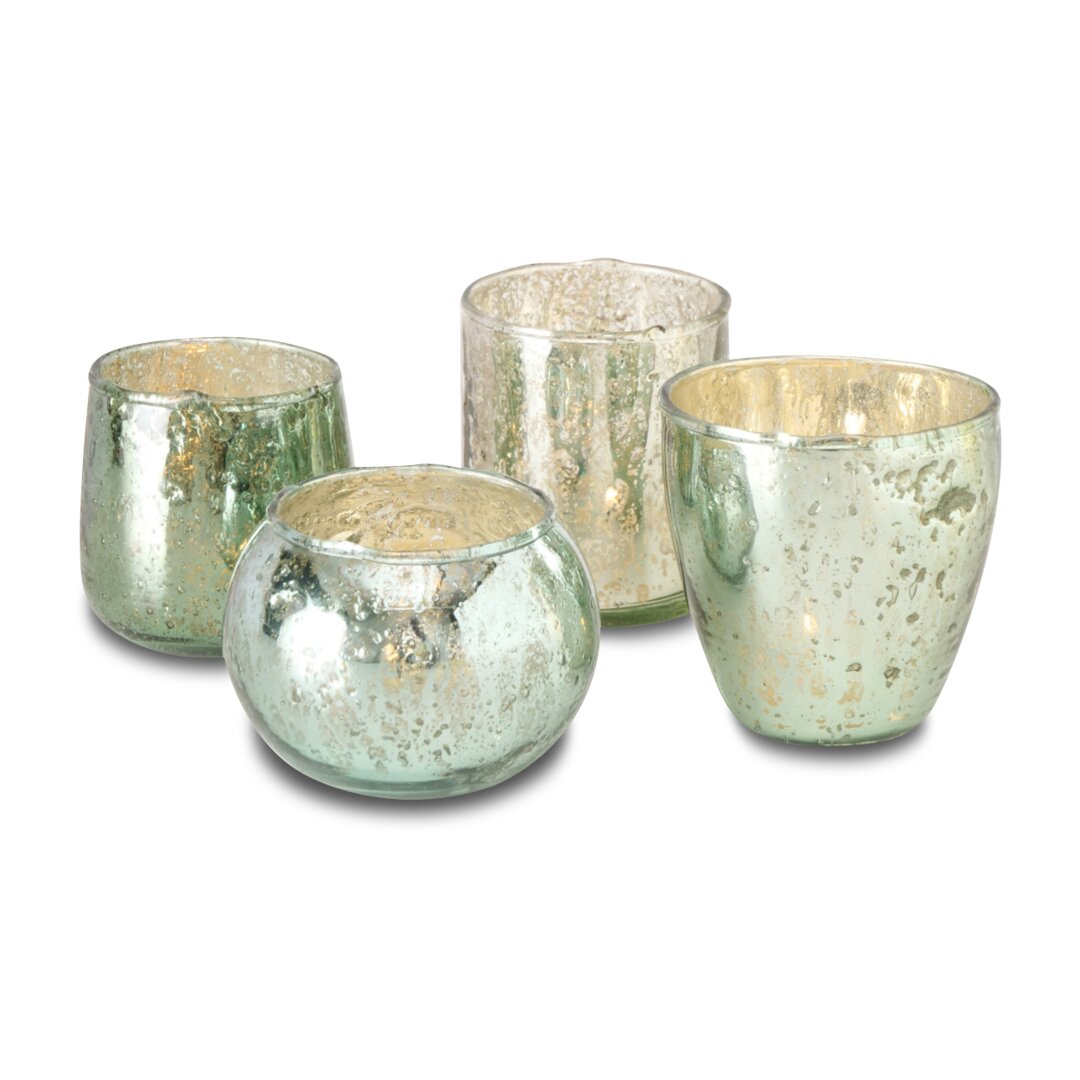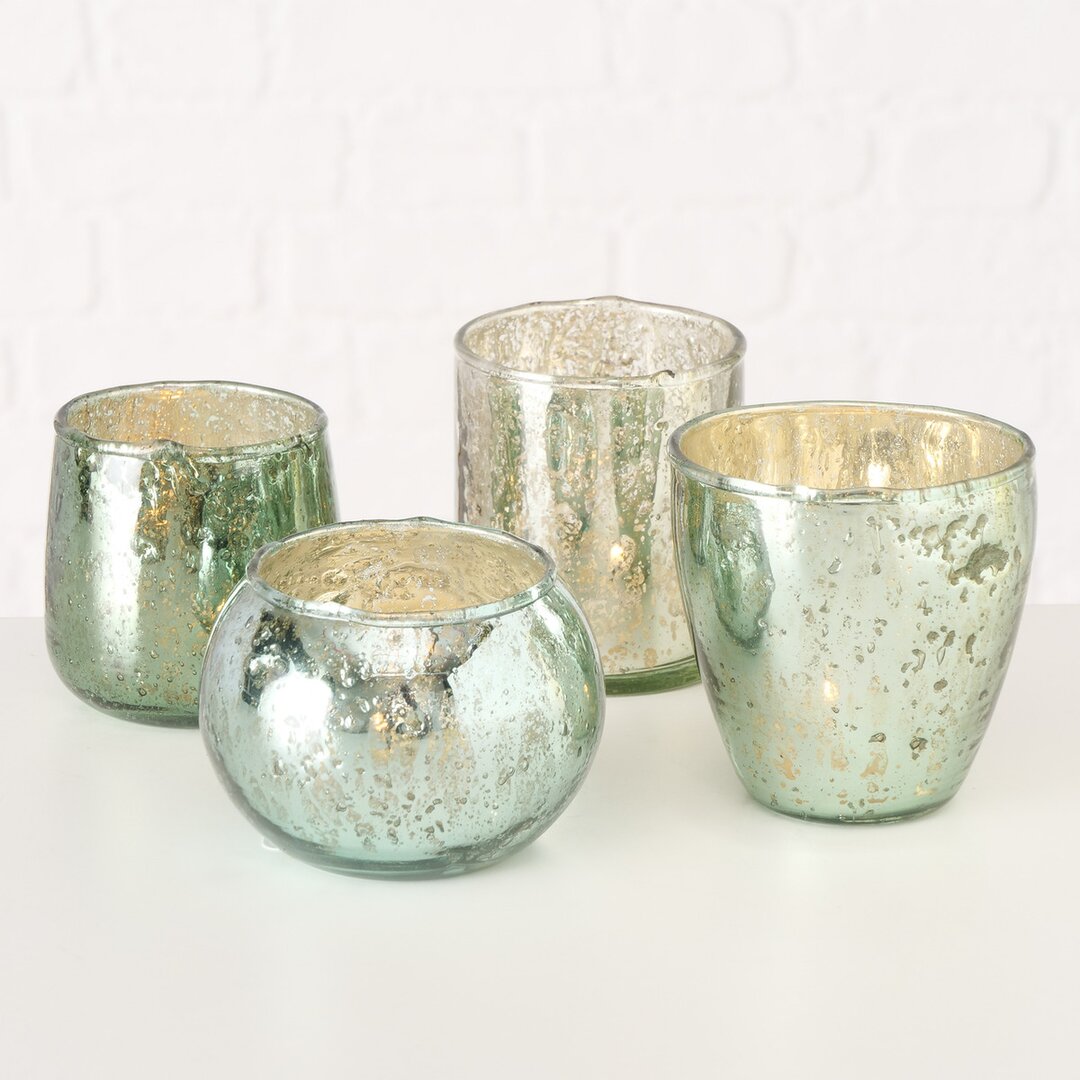 Windlicht "Xelo", grün-silber, Ø 9 x 9 cm, 4-fach sortiert