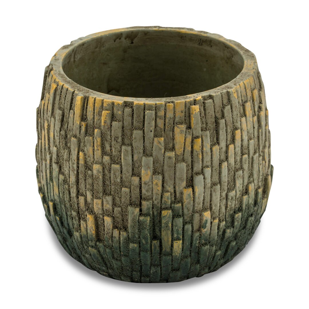 Zementtopf "Stäbchen", grün-gold, Ø 15 x 13 cm
