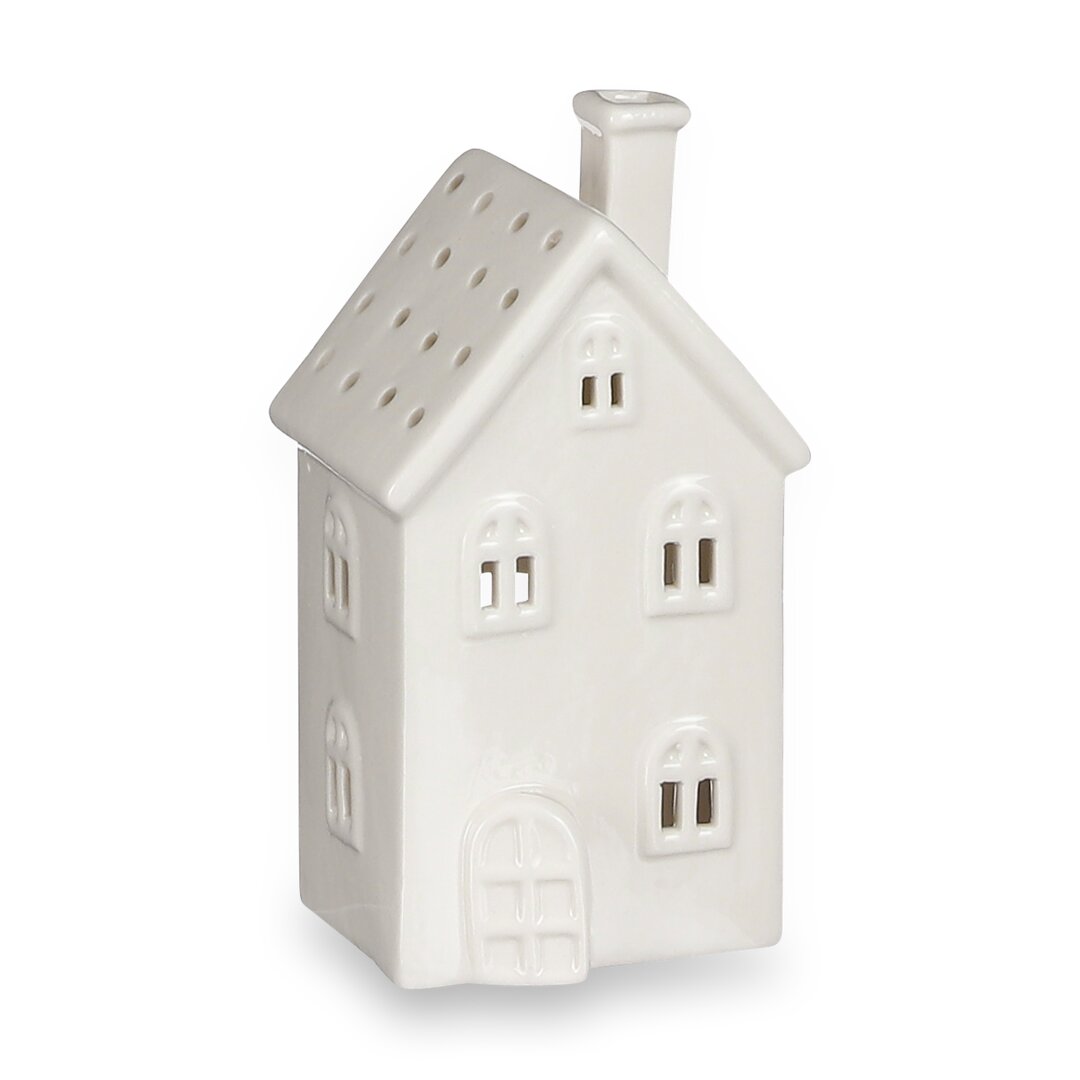 Teelichthalter Haus, weiß, 8,5 x 16 cm