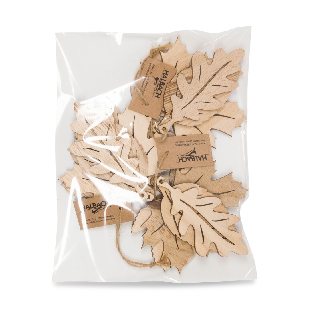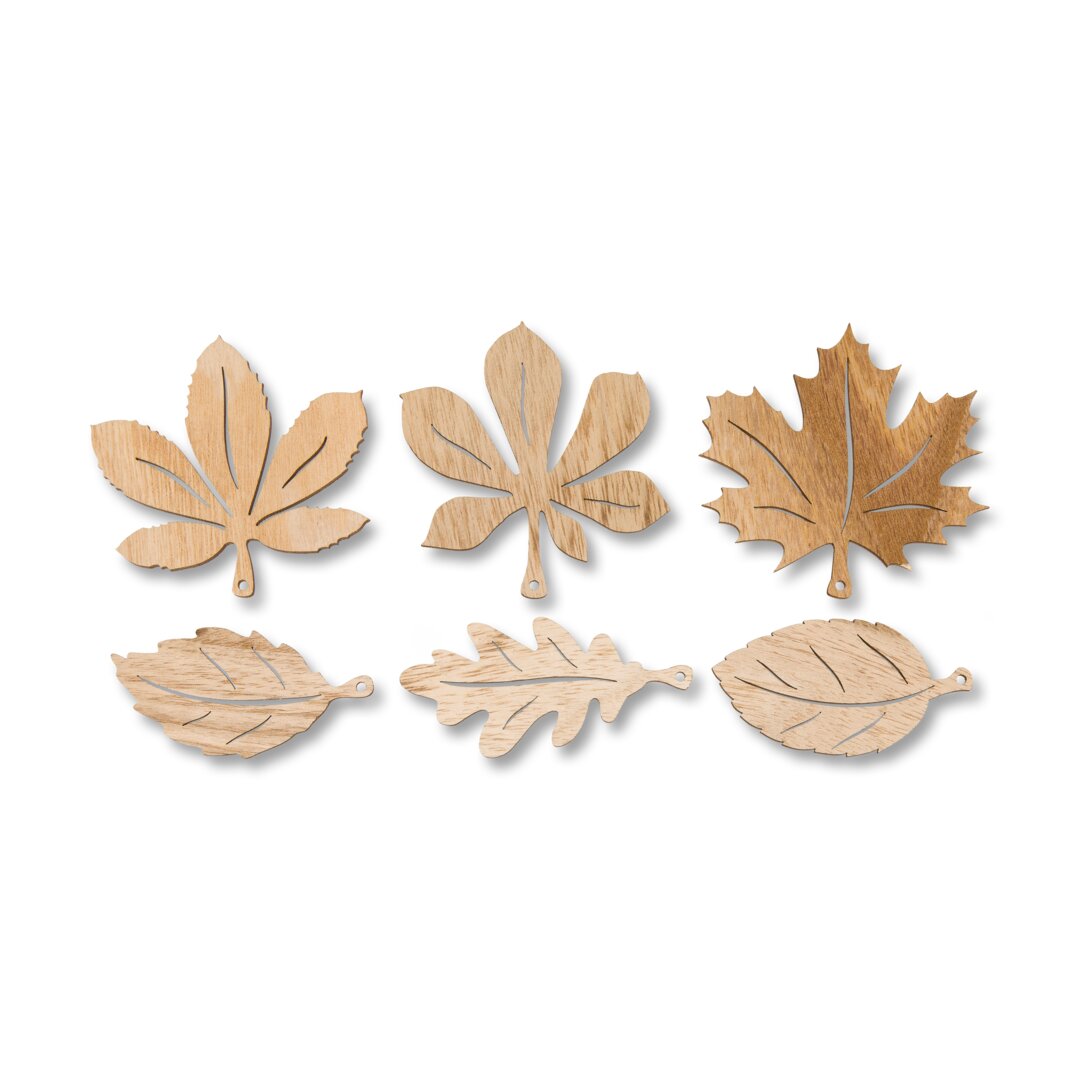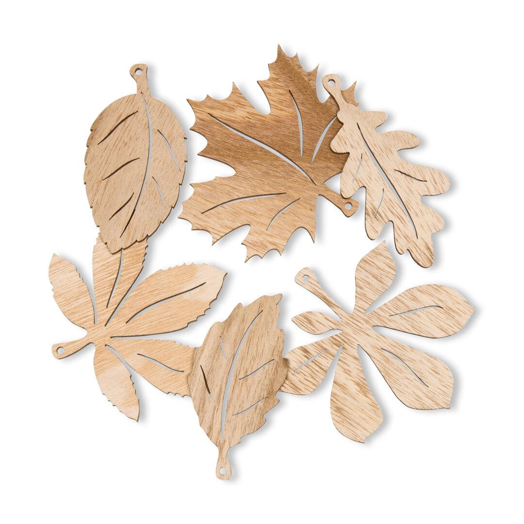Holzsortiment "Herbstblätter", natur, 3-fach sortiert, 6er Set