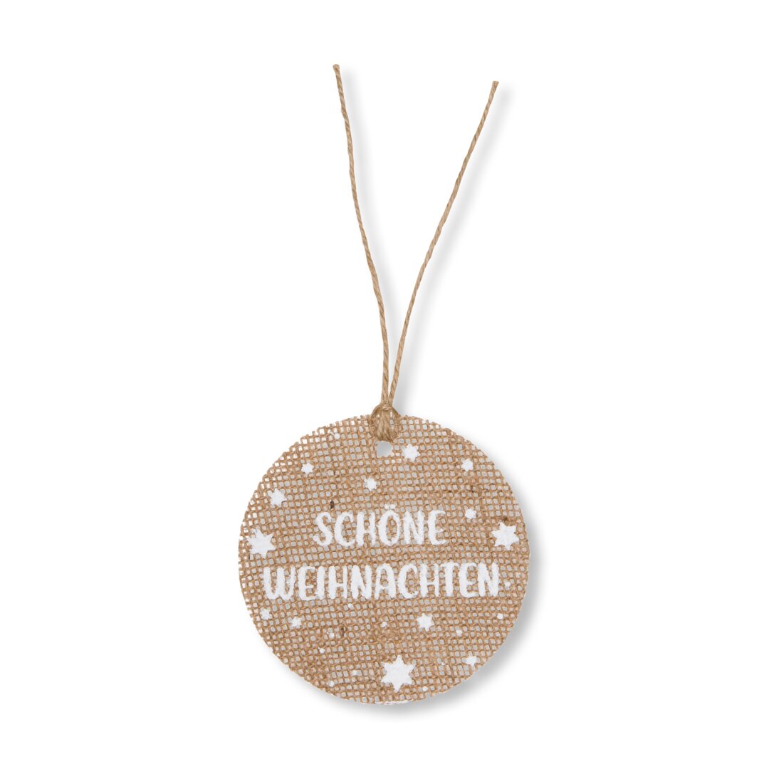 Jute-Hänger" Schöne Weihnachten", natur-weiß, 4 St.