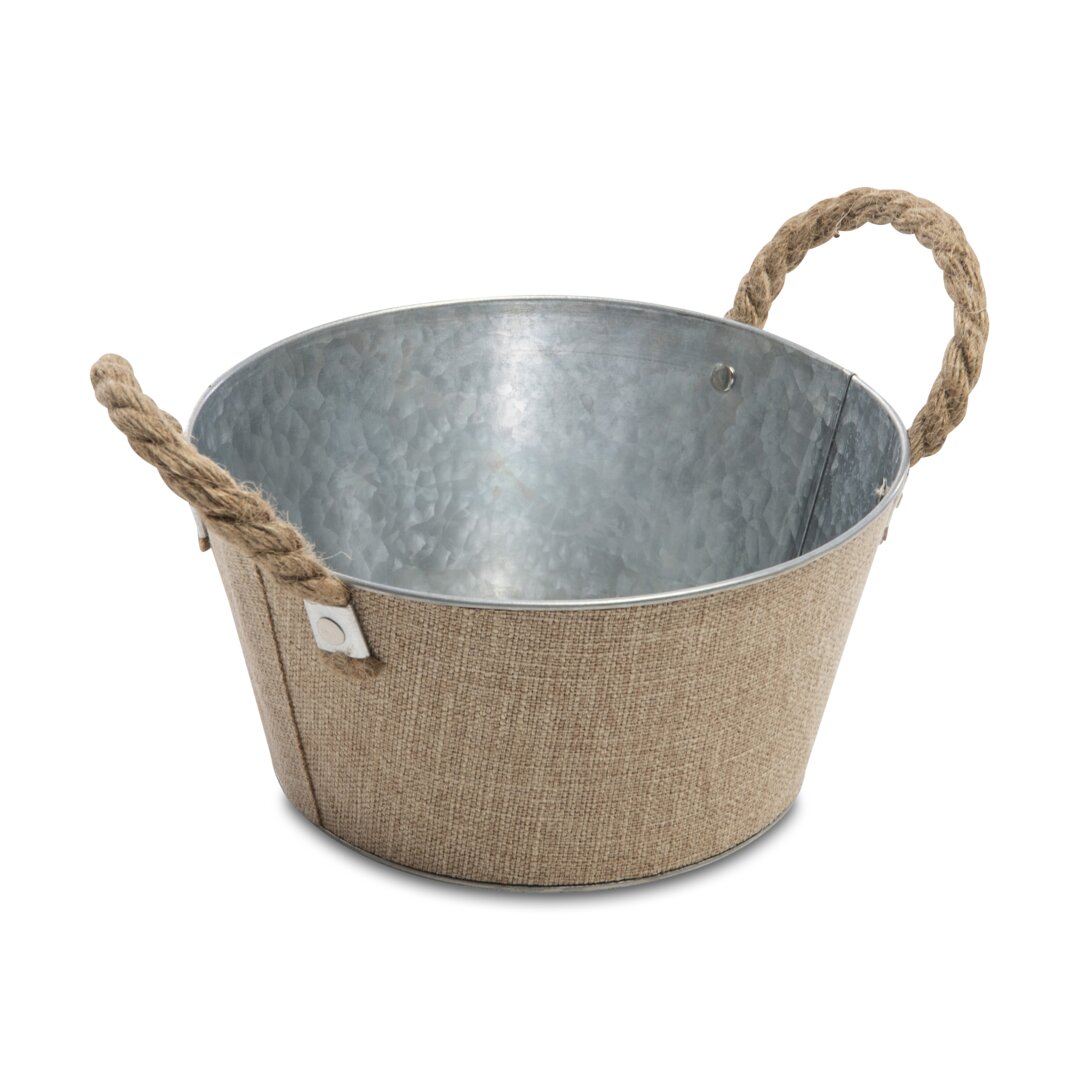 Zink-Jute-Pflanzschale mit Henkel, natur, Ø 18 x 9 cm