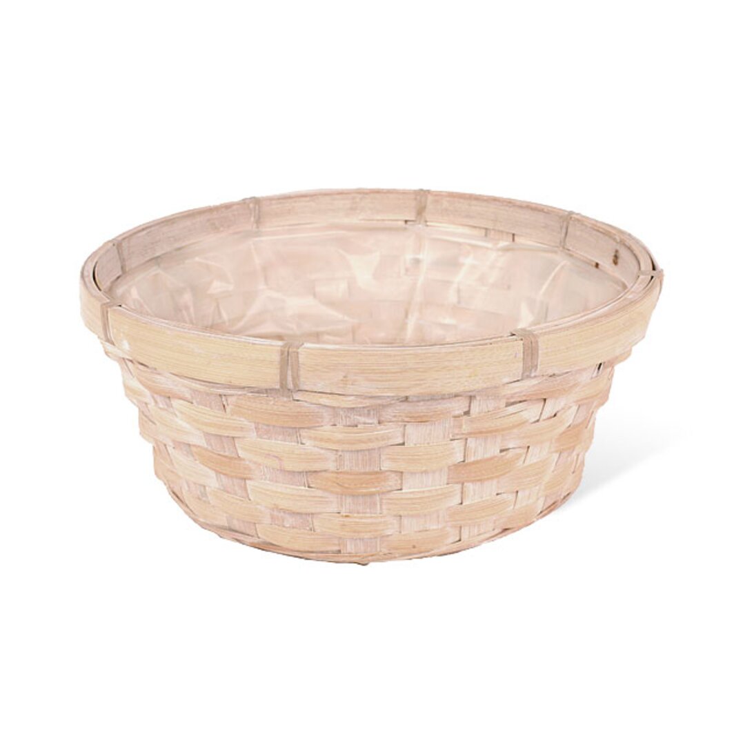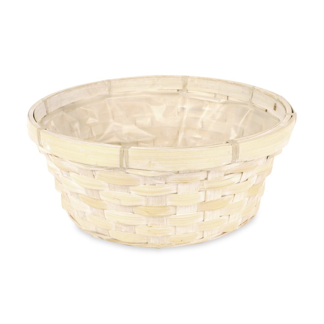 Bambussplitt-Pflanzkorb, rund, weiß gewaschen, Ø 25 cm